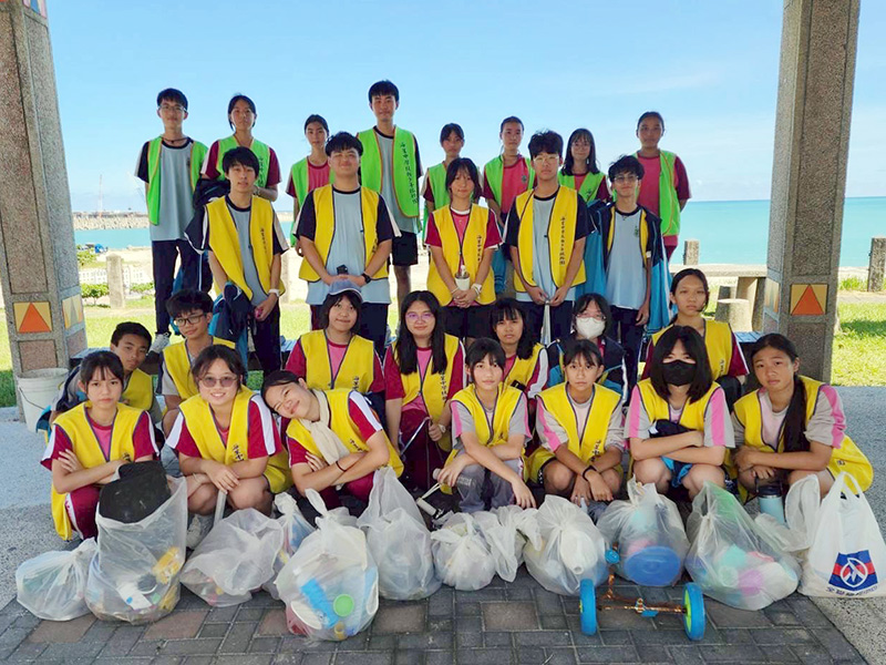 「食農遊藝社」則以校園農場為起點,實際體驗「從土地到餐桌」的過程,勞動中學習珍惜資源,也透過成果分享回饋校園,在汗水與收穫中,實踐與自然共生、與社會共好的服務初衷; 學生自治會推動減塑早餐、愛心義賣與校園永續導覽,將服務精神落實於校園治理與公共行動。另有七年級戶外教育課程,帶領學生走進下寮海灘,透過淨灘與牽罟體驗,在流汗與合作中,學會守護環境,也理解在地文化的價值,每屆參與學生數有 150 人。透過這些日常而踏實的服務行動,讓學生培養關懷社會的能力。