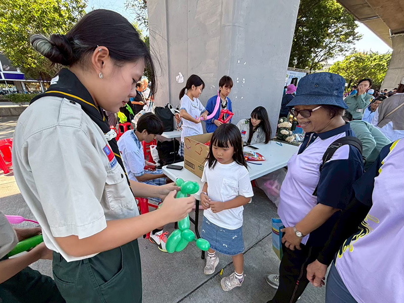 北新童軍團更是服務學習的核心推手,主動走入社區,結合在地社區發展協會、公部門與大專院校,規劃多元且具教育意義的服務行動。近年來,童軍團參與孔廟考生祈福服務行動,協助大型公共活動流程,約百位學生在分工合作中學習責任與臨場應變;「賴厝社區手工月餅製作義賣」則是讓學生在實作中體會服務與社會關懷的連結;「筏子溪淨溪行動」結合環境教育,深化學生的生態保育意識;以及多場社區運動會與樂齡競賽服務,培養學生耐心溝通、尊重他人與世代共融的觀念。透過這些具創意且貼近生活的服務學習歷程,不僅培養學生行動力與團隊精神,更引導其將所學回饋社會,讓志願服務成為學生品格成長的重要養分。