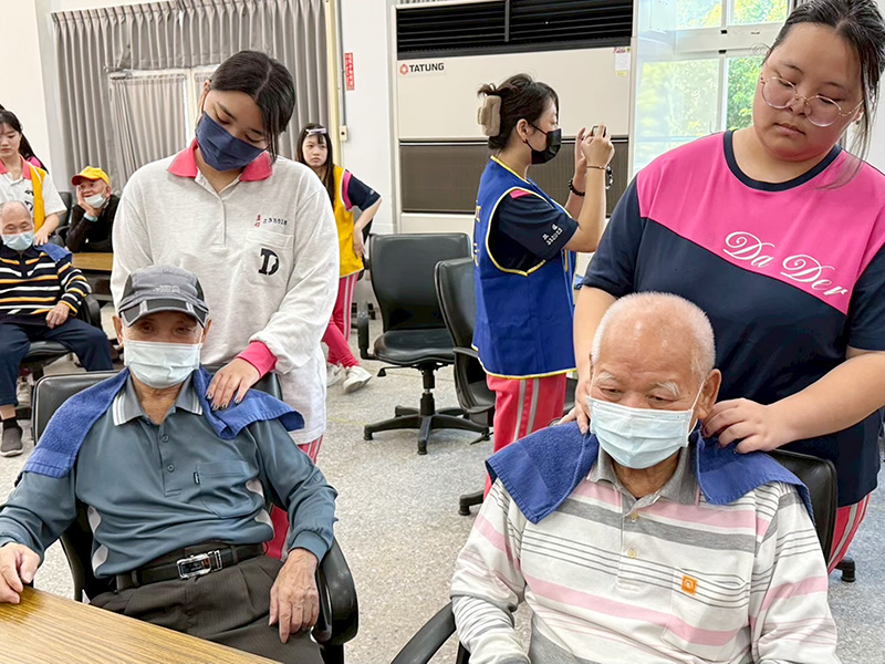 樹德家商致力於結合專業技能與社會服務,透過服務學習課程,結合校內實作、建教合作與校外志工,讓學生在不同階段、在不同場域累積經驗。像是長照機構關懷、社區送暖、校外大型活動禮賓服務、環境淨灘等,都納入年度規畫,讓服務成為常態,而不是一次性的活動。陪伴長輩,是最常見也最深刻的一課。由僑生組成的「4Q 志工隊」走進獨居長者家中聊天、按摩、送年節物資;照顧服務科到日照中心帶動律動與桌遊;美容科為長照機構義剪、為家扶中心受獎人妝髮打理。面對孩子,學生也成為可靠的大哥哥大姊姊。幼保科在科工館展場帶小朋友闖關解說,重陽節安排老幼共學;4Q 志工隊到國小辦品德體驗營,引導團隊合作與解決問題。對社區與環境的回應,同樣不缺席。餐飲科寒冬送暖,香料烤雞傳愛心,環保志工到旗津淨灘,僑生掃街敦親睦鄰,禮賓隊支援城市大型活動。對樹德家商來說,志願服務不是額外負擔,而是人格教育的一部分。期望學生以自己的專業帶來改變,讓那份成就感成為未來持續關懷社會的動力。